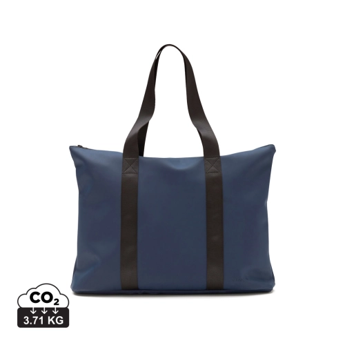 A small, sleek bag made of a lightweight, water-resistant nubuck PU fabric with a stylish matte exterior and a lightweight synthetic fabric interior. The main compartment closes with a zipper. Sturdy handles so you can fill the bag properly.